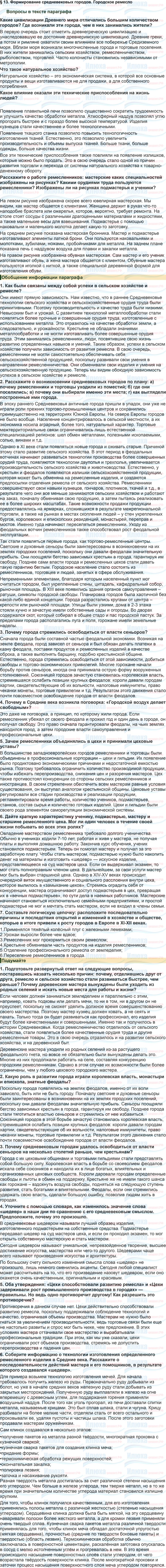 § 13. Формирование средневековых городов. Городское ремесло