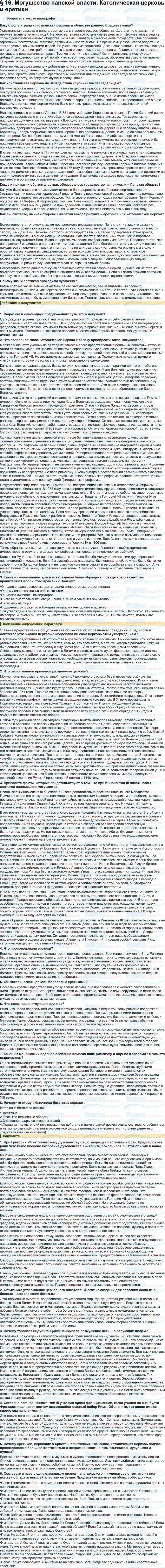 § 16. Могущество папской власти. Католическая церковь и еретики