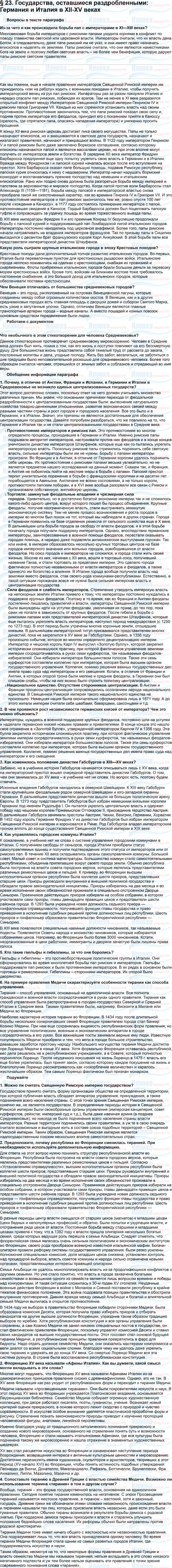 § 23. Государства, оставшиеся раздробленными: Германия и Италия в XII—XV веках