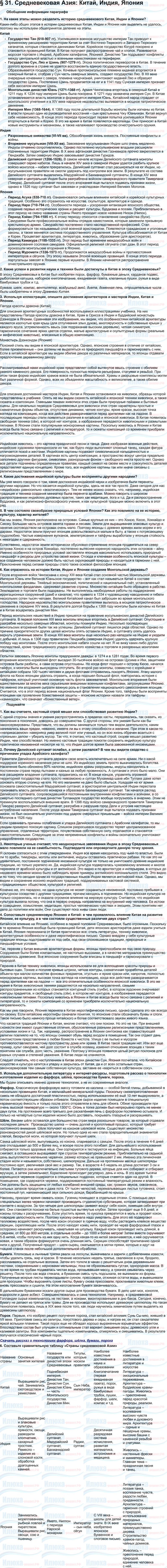 § 31. Средневековая Азия: Китай, Индия, Япония