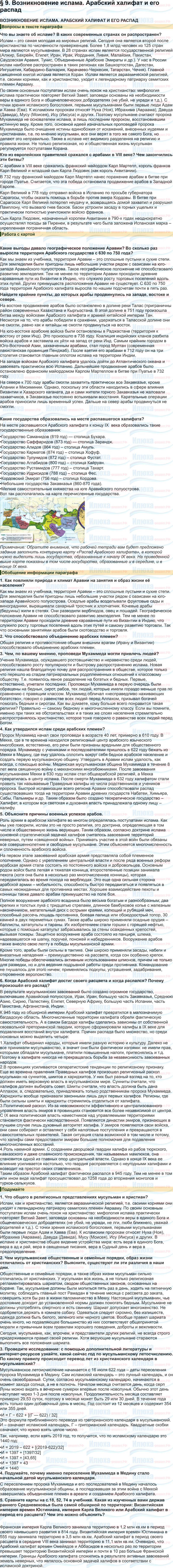 § 9. Возникновение ислама. Арабский халифат и его распад