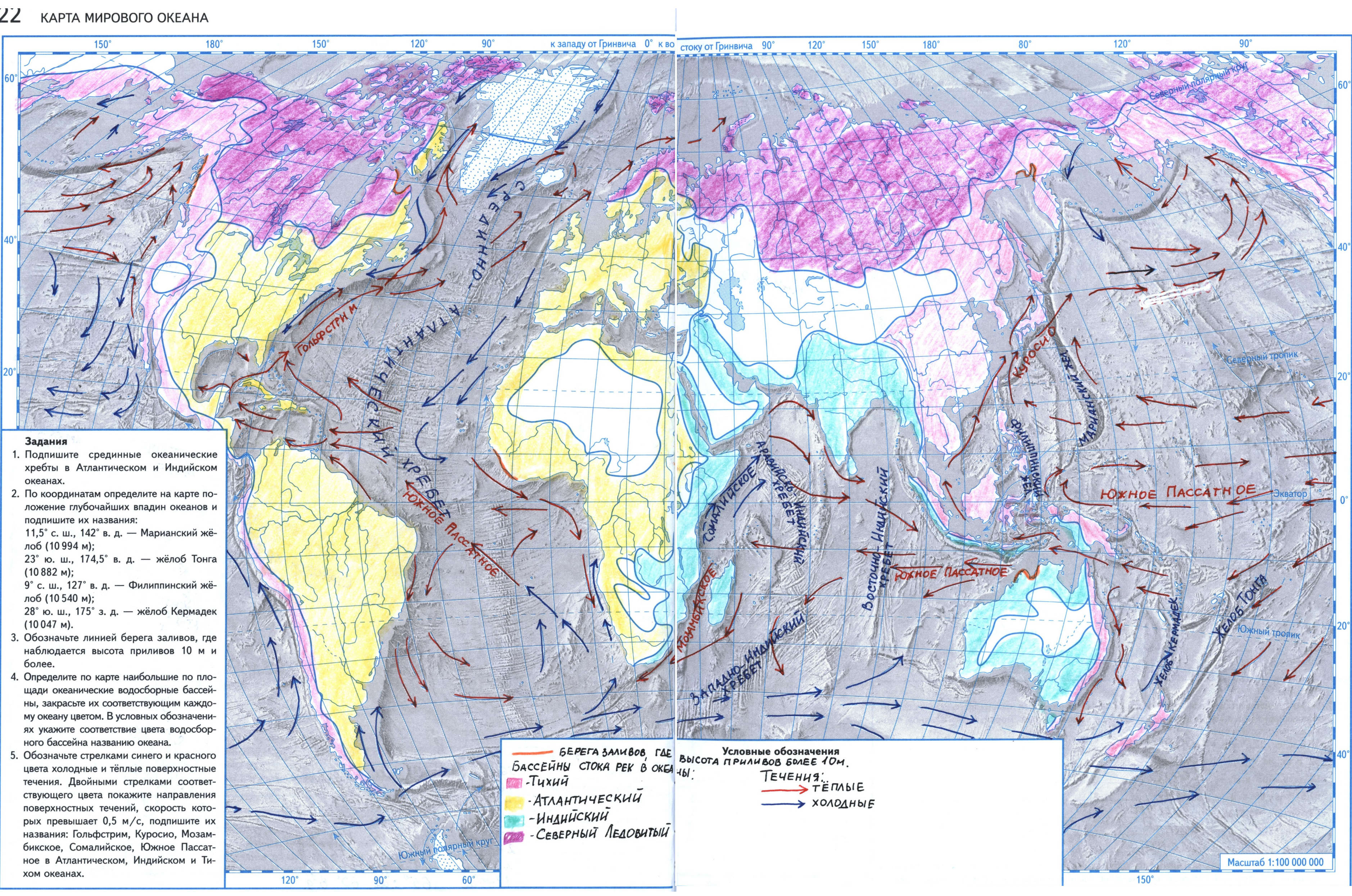 Карта полушарий. Литосфера. Стр. 20-21