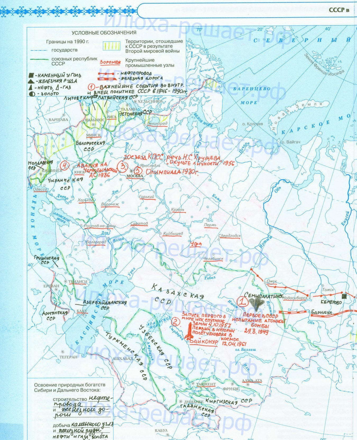 СССР в 1946-1990 годы» атлас Дрофа 2015 год, страница 12,13