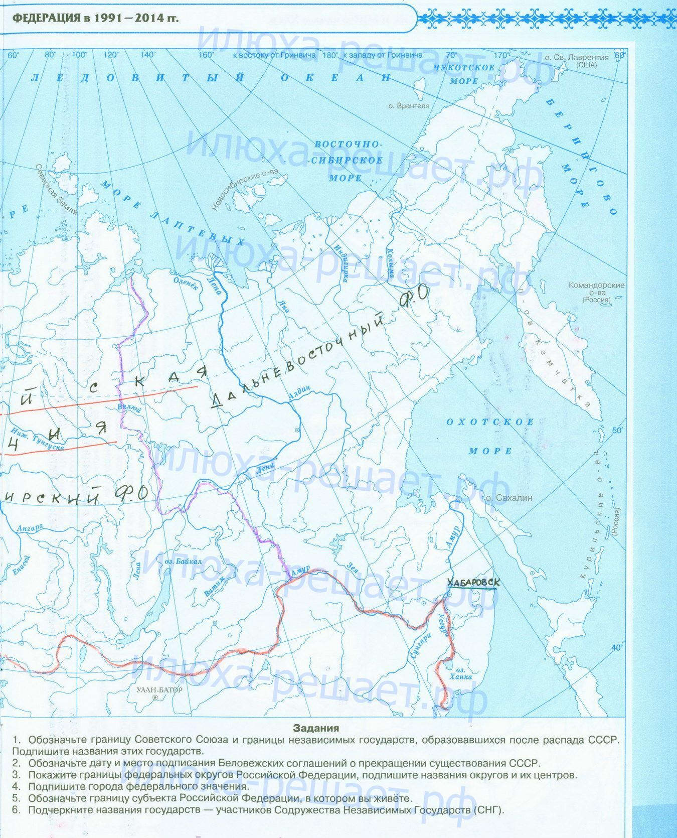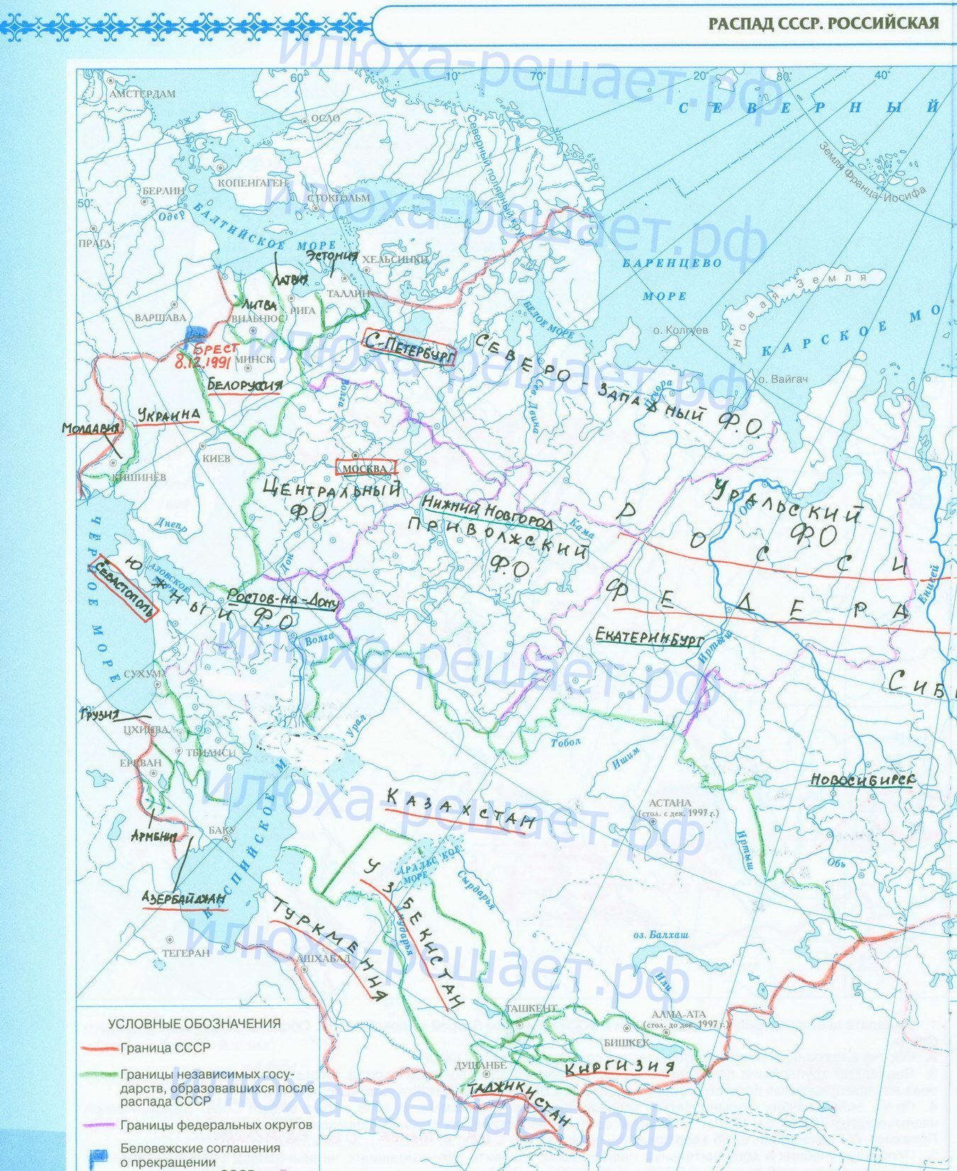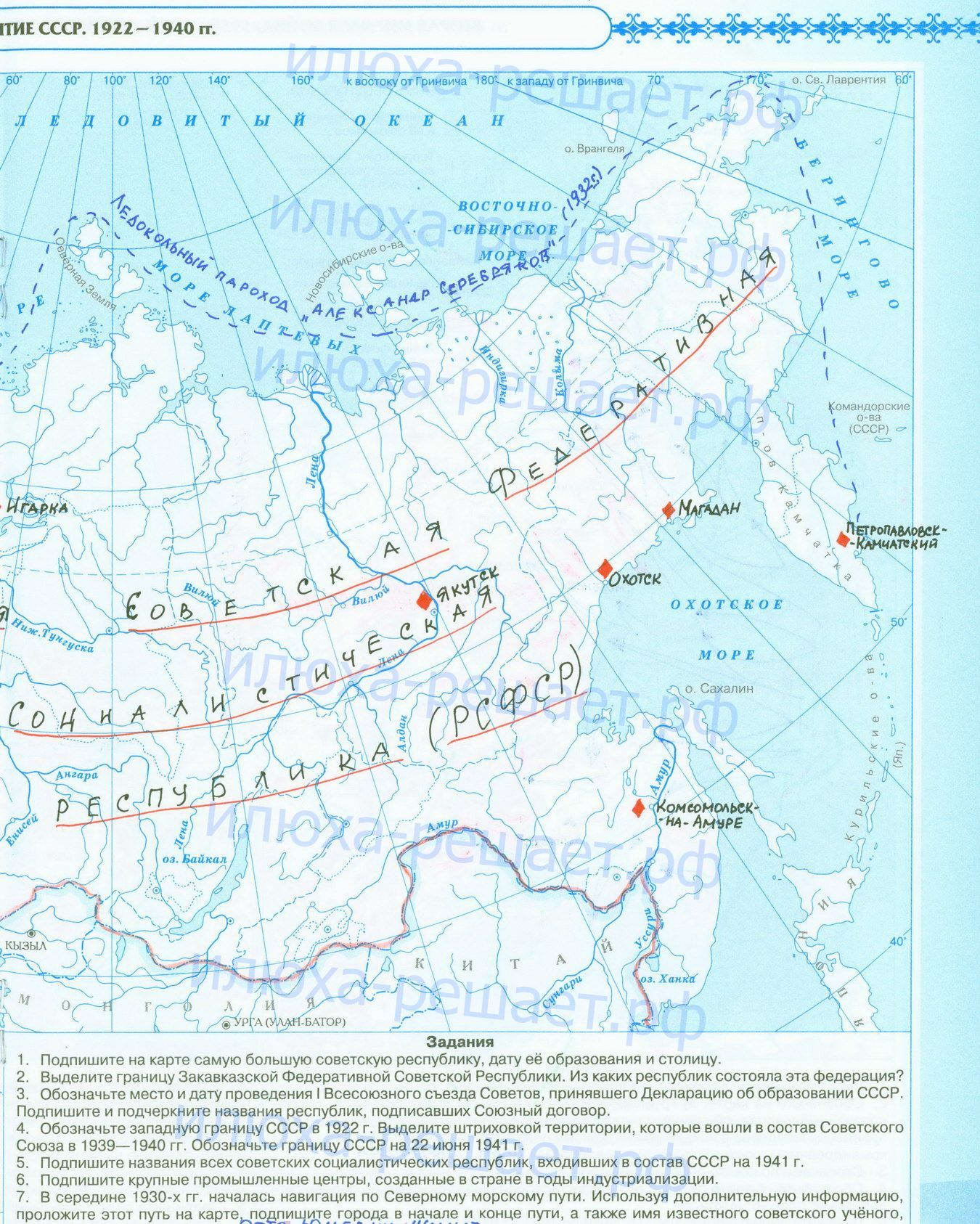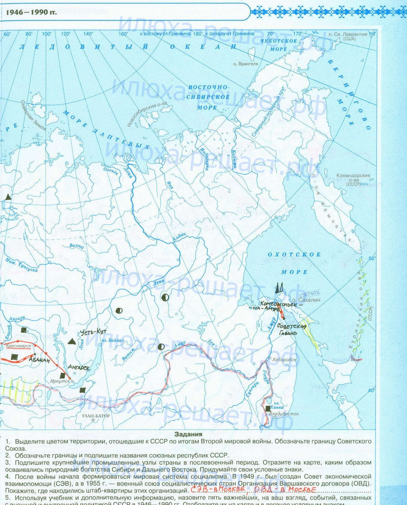 Революция 1917 года, начало Гражданской войны и иностранной интервенции; заполненная контурная карта с ответами стр 5