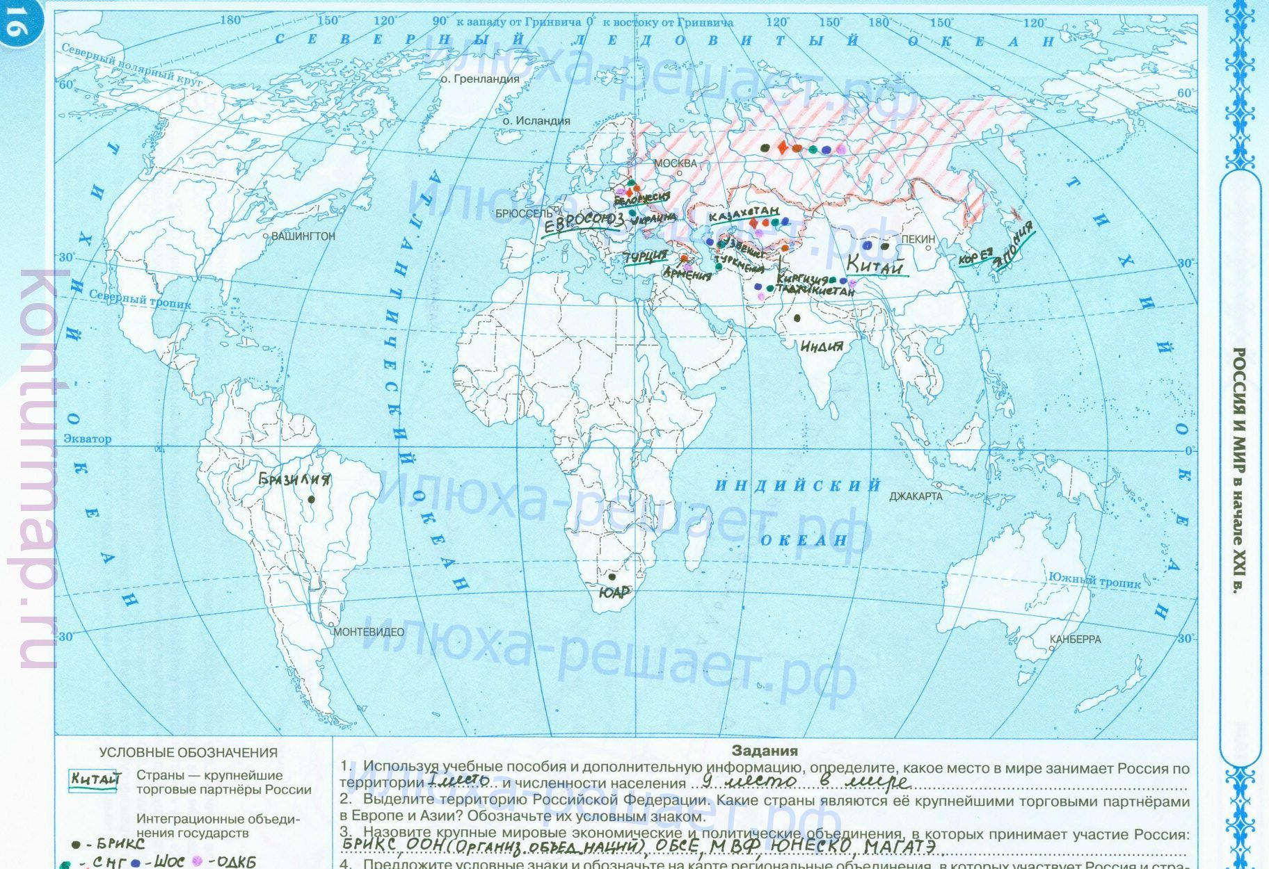Россия и мир в начале 21 века атлас Дрофа 2015 год, страница 16