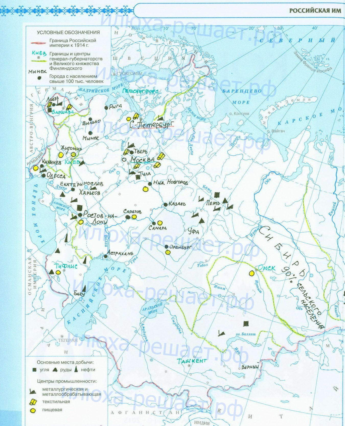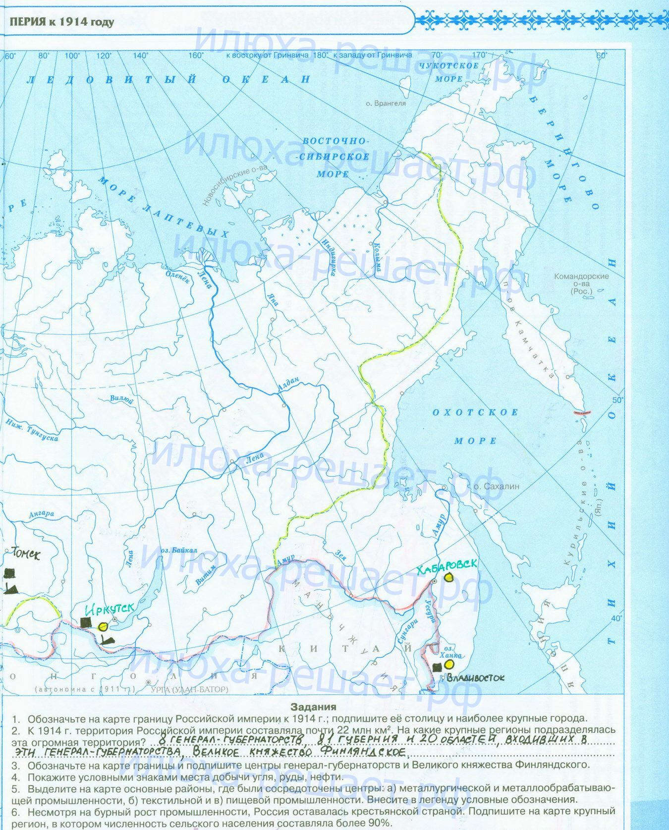 Российская империя к 1914 году готовая контурная карта стр 2,3