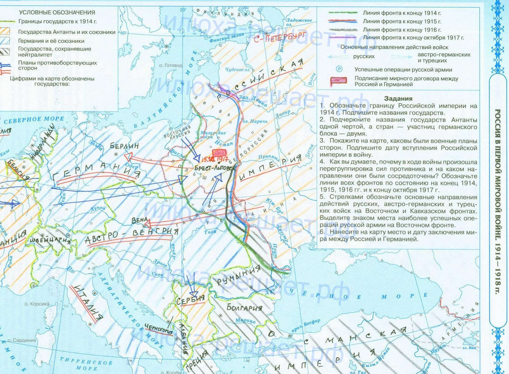 Россия в Первой мировой войне 1914-1918 гдз контурная карта стр 4