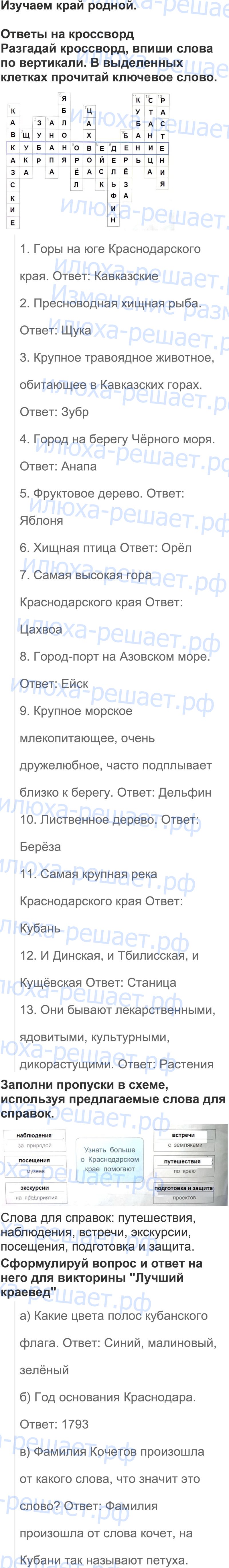 С помощью решебника к рабочей тетради по кубановедению 3 класс можно быстро поднять свою успеваемость и хорошо выучить предмет.