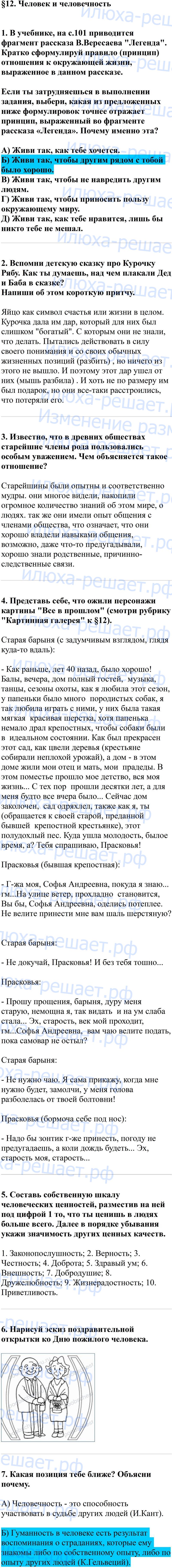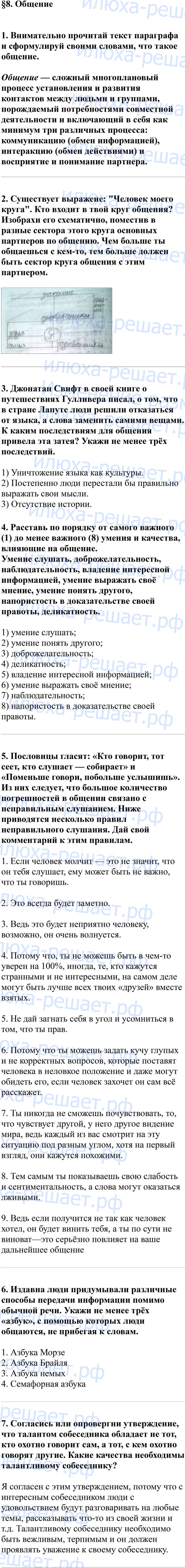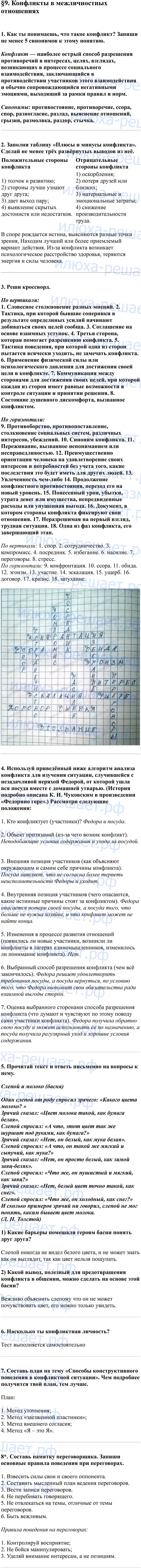 Решебник по обществознанию рабочая тетрадь 6 класс для удобства разбит на параграфы, которые в свою очередь содержат на странице решения вопросы и ответы на них.