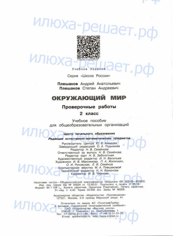 ГДЗ к проверочным работам по окружающему миру за 2 класс автор Плешаков, Плешаков издательство Просвещение серия Школа России служит лучшим способом проверки своих знаний перед проверочной работой в школе.