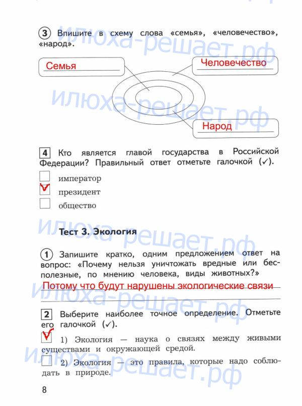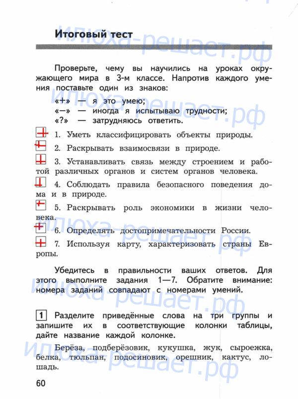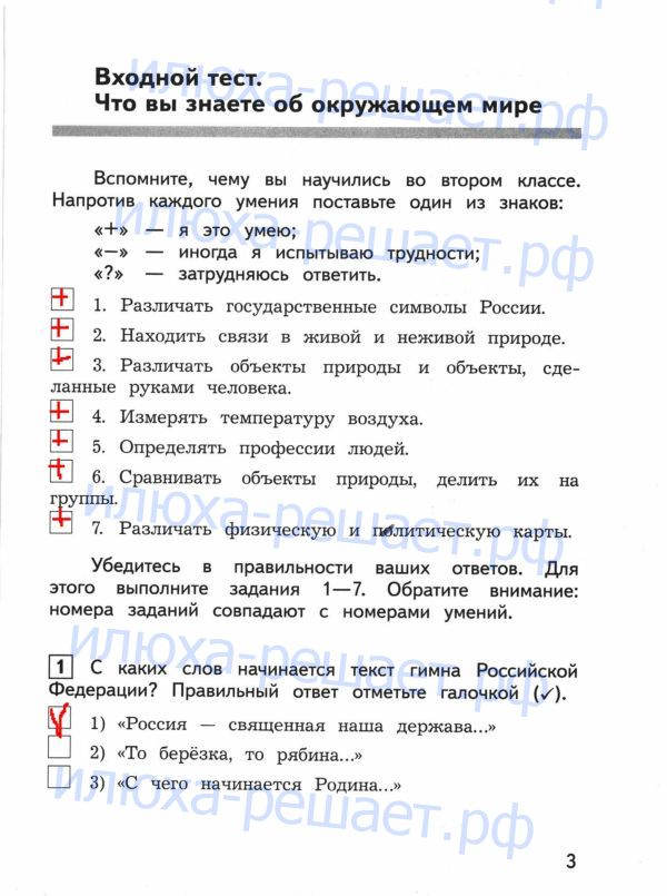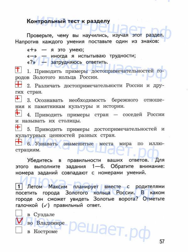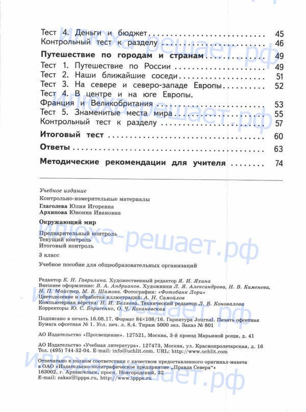 ГДЗ к контрольно-измерительным материалам по окружающему миру за 3 класс авторы Глаголева Ю.И., Архипова Ю.И. издательство Просвещение серия Школа России служит лучшим способом проверки своих знаний в тестовой и вопросной форме.
