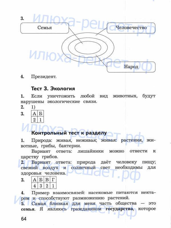 В решебнике по окружающему миру к контрольно-измерительным материалам: предварительный контроль, текущий и итоговый за 2 класс Глаголева, Архипова содержатся ответы ко всем контрольно измерительным материалам.
