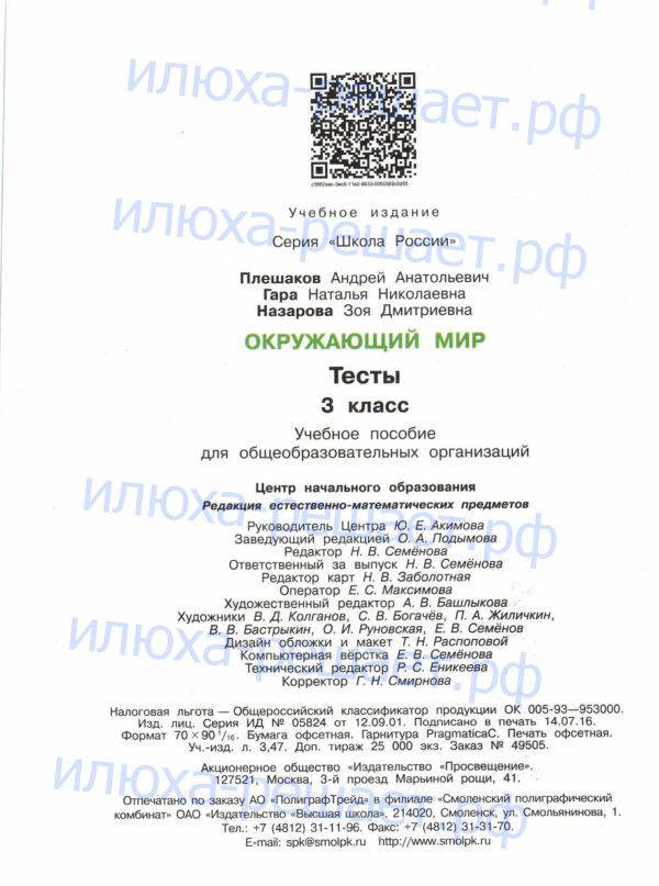 ГДЗ к тестам по окружающему миру за 3 класс авторы Плешаков А.А., Гара Н.Н., Назарова З.Д.. издательство Просвещение серия Школа России служит лучшим способом проверки своих знаний в тестовой форме.