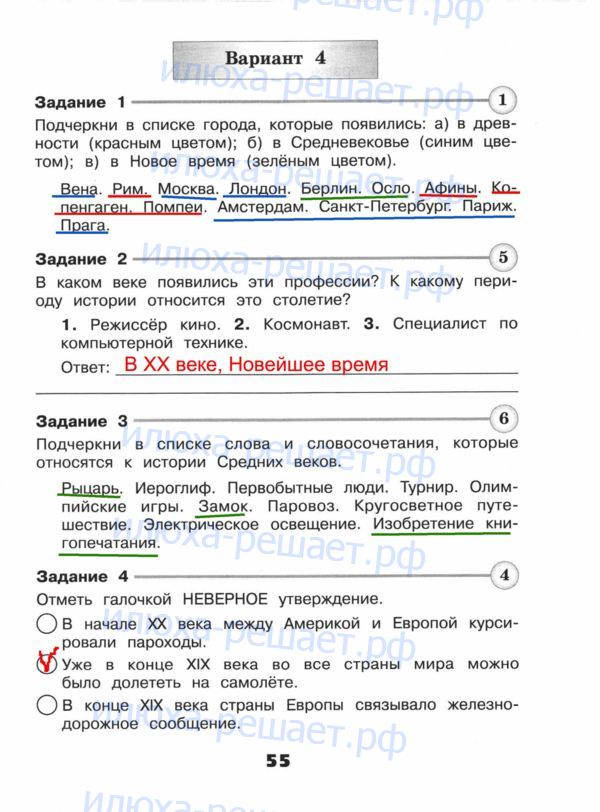В решебнике по окружающему миру 4 класс Плешаков содержатся ответы к заданиям со всех страниц из пособия. Всего в книге 4 промежуточных и одна итоговая проверочная работа. В каждой 4 варианта.