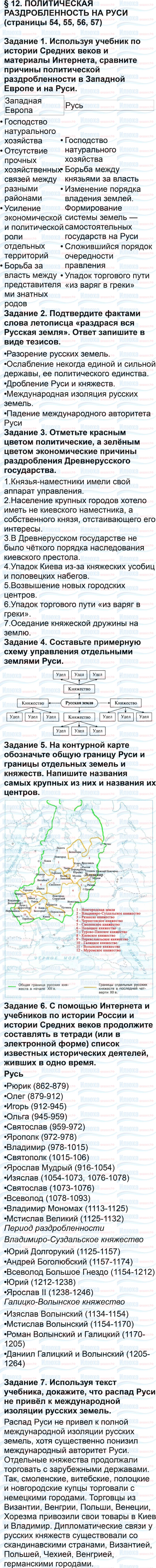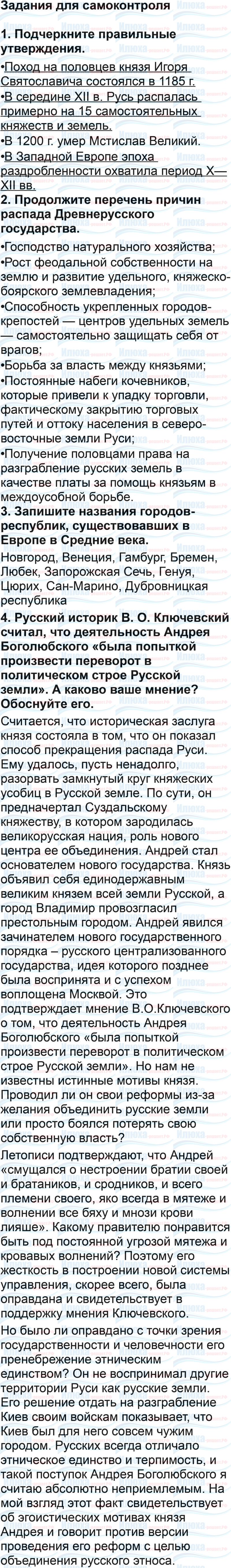 Готовые домашние задания ГДЗ по истории к рабочей тетради за 6 класс авторов Артасов, Данилов. Ответы к вопросам из параграфов, заданиям для самоконтроля и самостоятельным работам.