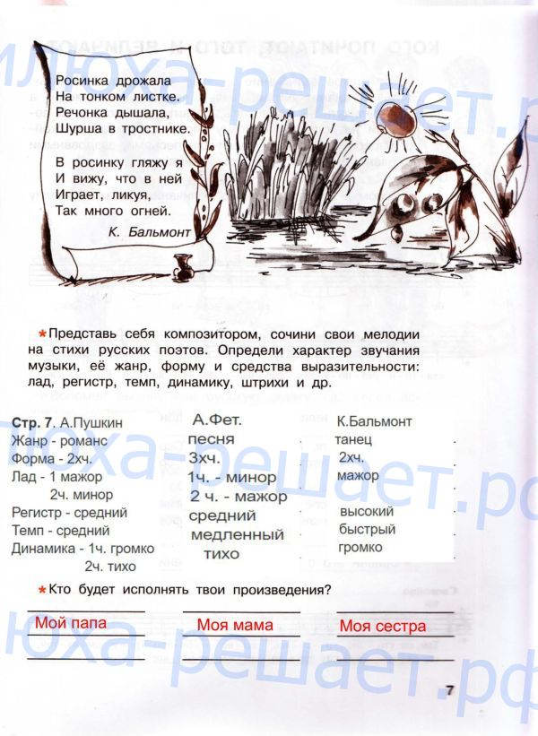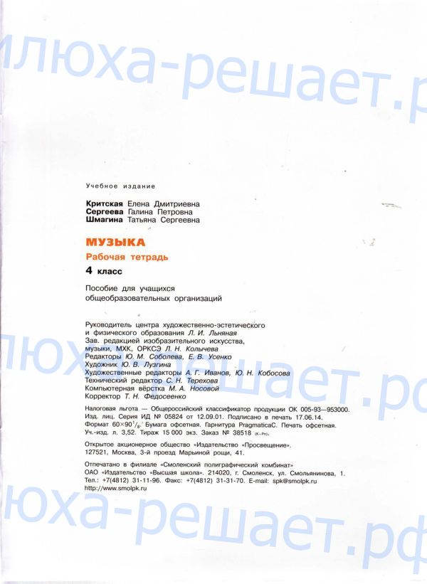 ГДЗ к рабочей тетради по музыке 4 класс авторы Е.Д. Критская, Г.П. Сергеева, Т.С. Шмагина издательство Просвещение помогают каждый день школьникам и родителям готовить домашнюю работу по такому, казалось бы, простому предмету.
