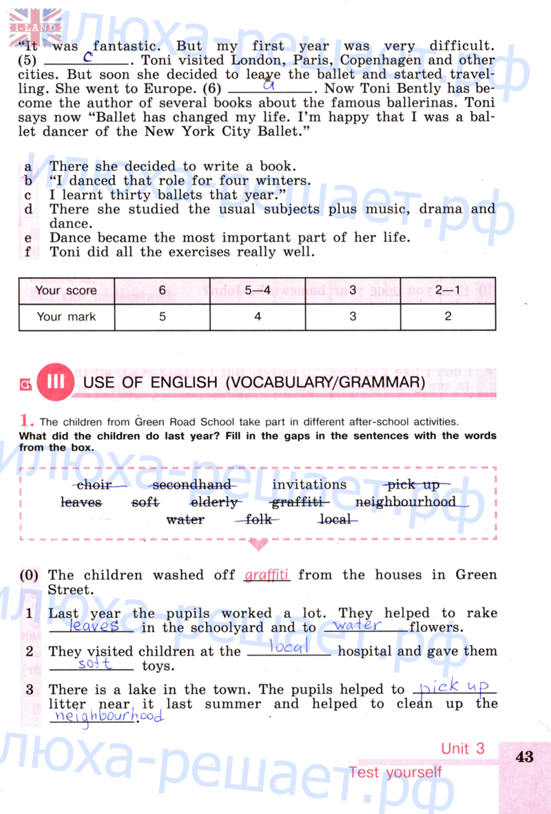 На помощь приходит ГДЗ к рабочей тетради по английскому языку 5 класс автор Кузовлев, в котором даны ответы ко всем номерам из Activity book.