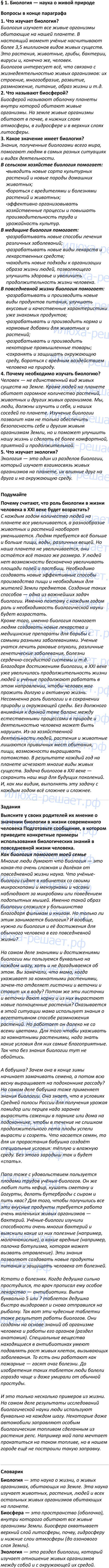 § 1. Биология — наука о живой природе