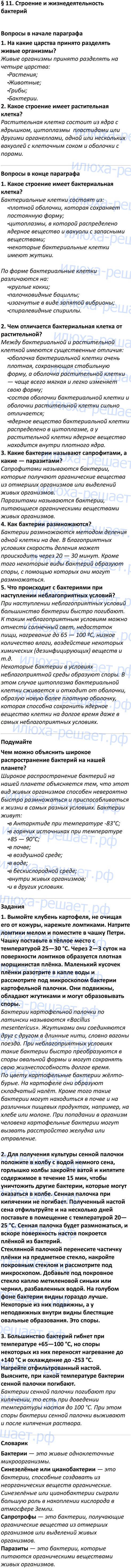§ 11. Строение и жизнедеятельность бактерий