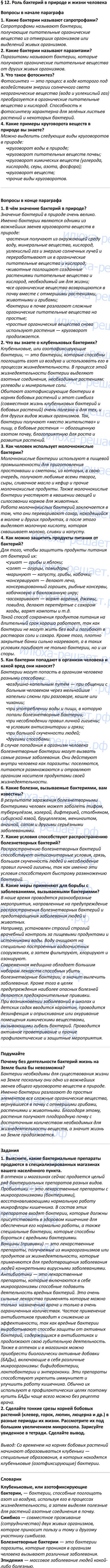 § 12. Роль бактерий в природе и жизни человека