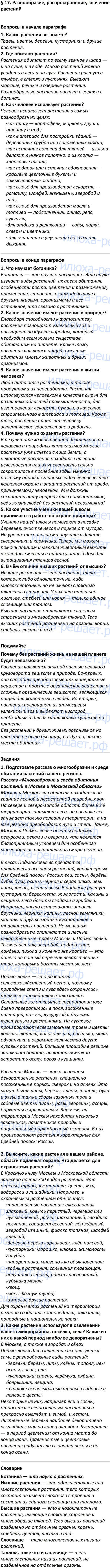 § 17. Разнообразие, распространение, значение растений