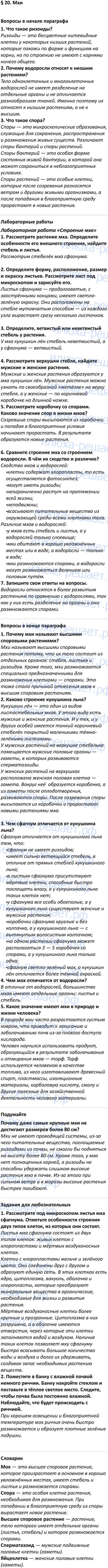 Для удобства поиска нужного ответа в готовом домашнем задании по биологии 5 класс Пасечник задания распределены по параграфам.