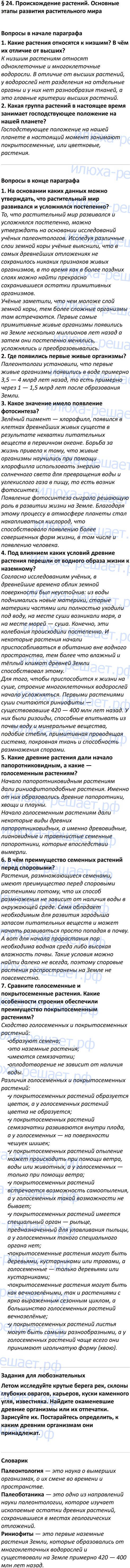 § 24. Происхождение растений. Основные этапы развития растительного мира