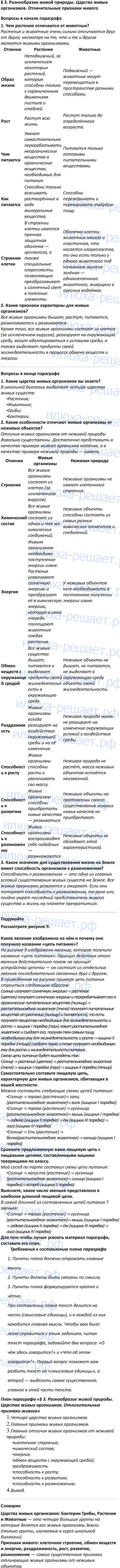 § 3. Разнообразие живой природы. Царства живых организмов. Отличительные признаки живого