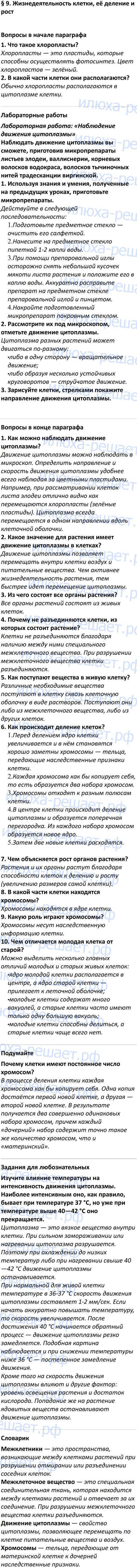 § 9. Жизнедеятельность клетки, её деление и рост