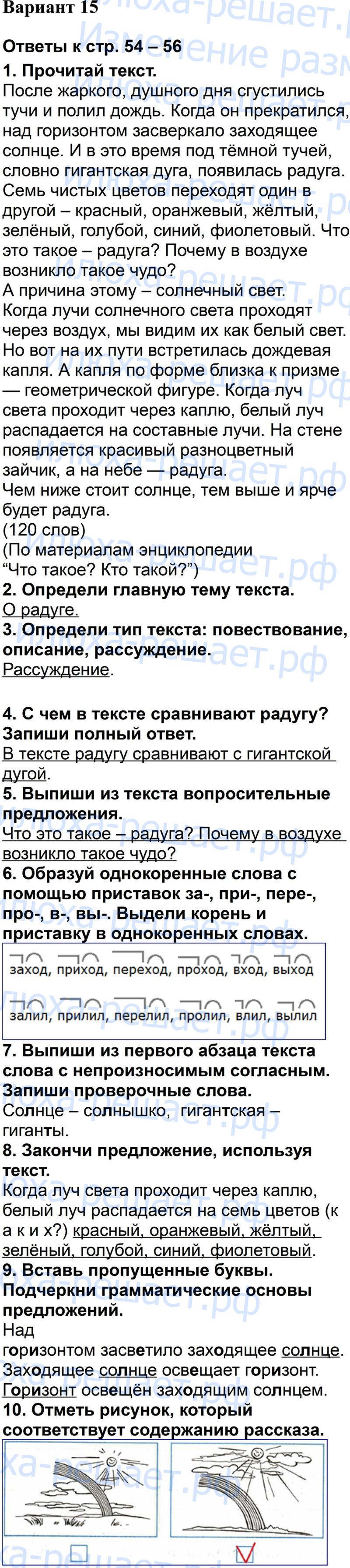 Вариант 15 (страница 54 – 56)