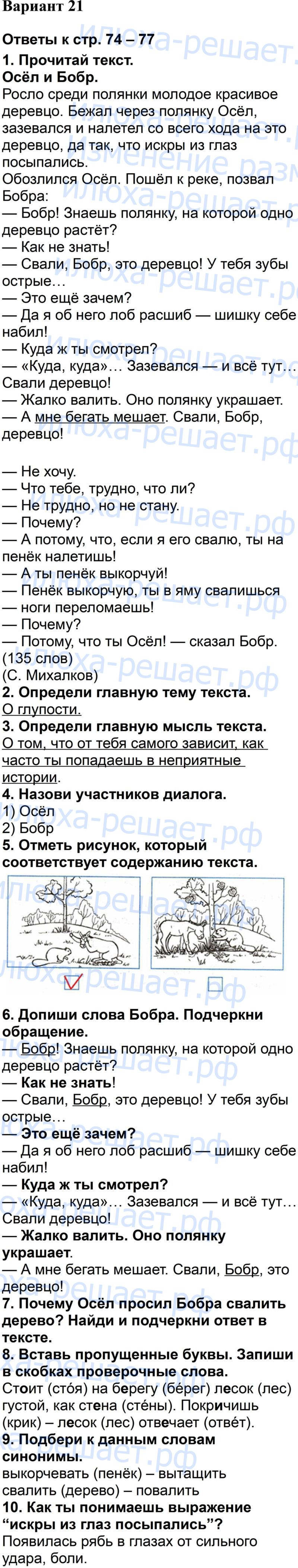 Вариант 21 (страница 74 – 77)